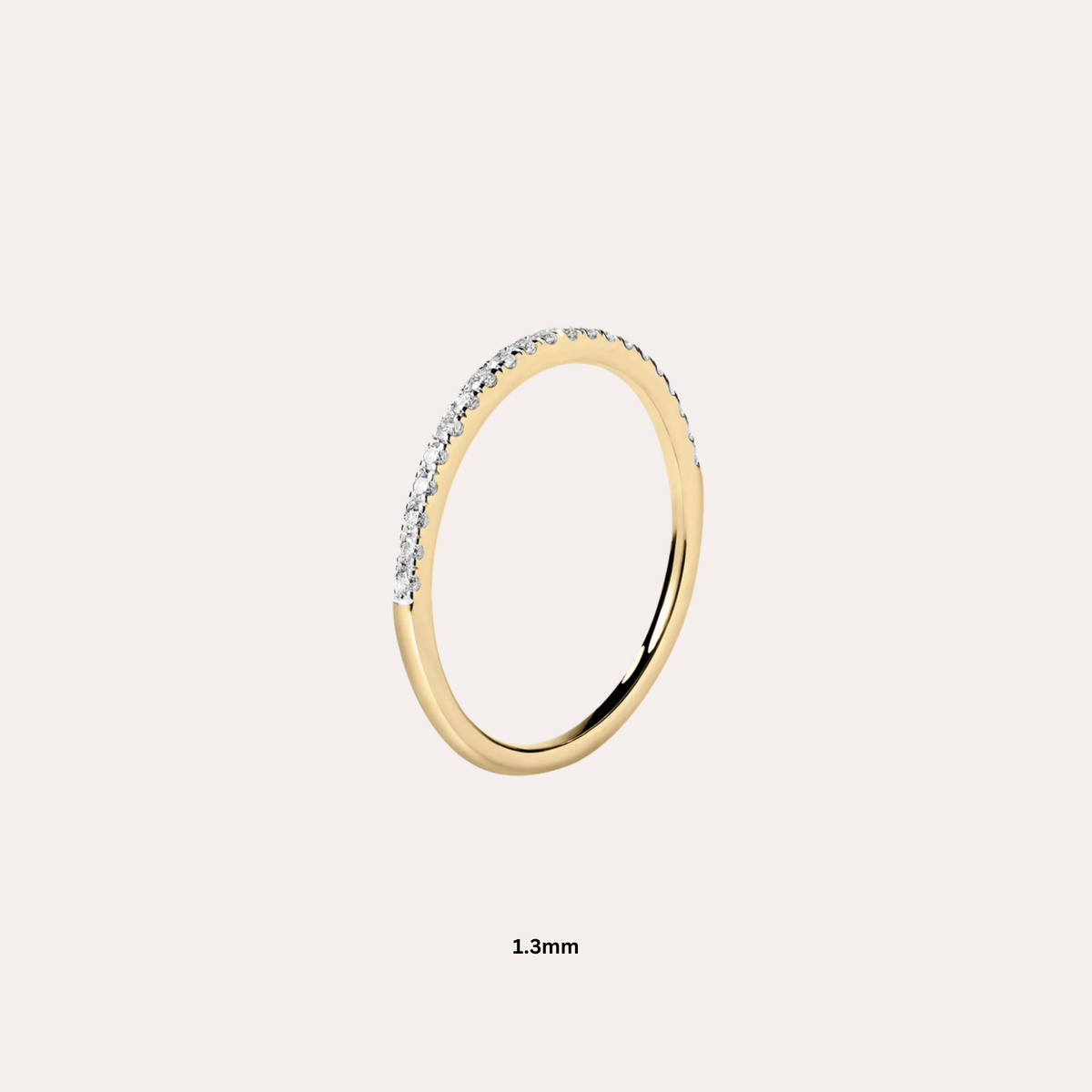An ultra-delicate halfway pavé diamond ring with 17 round natural diamonds. The slim 1.3mm band makes it ideal for stacking with other rings.